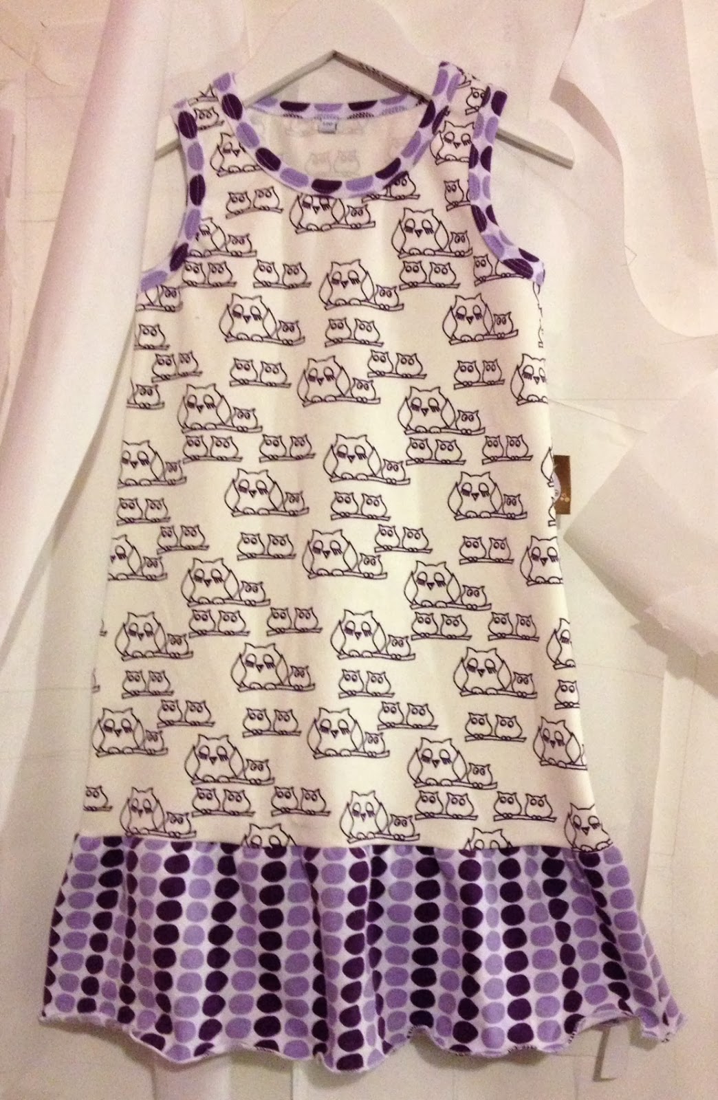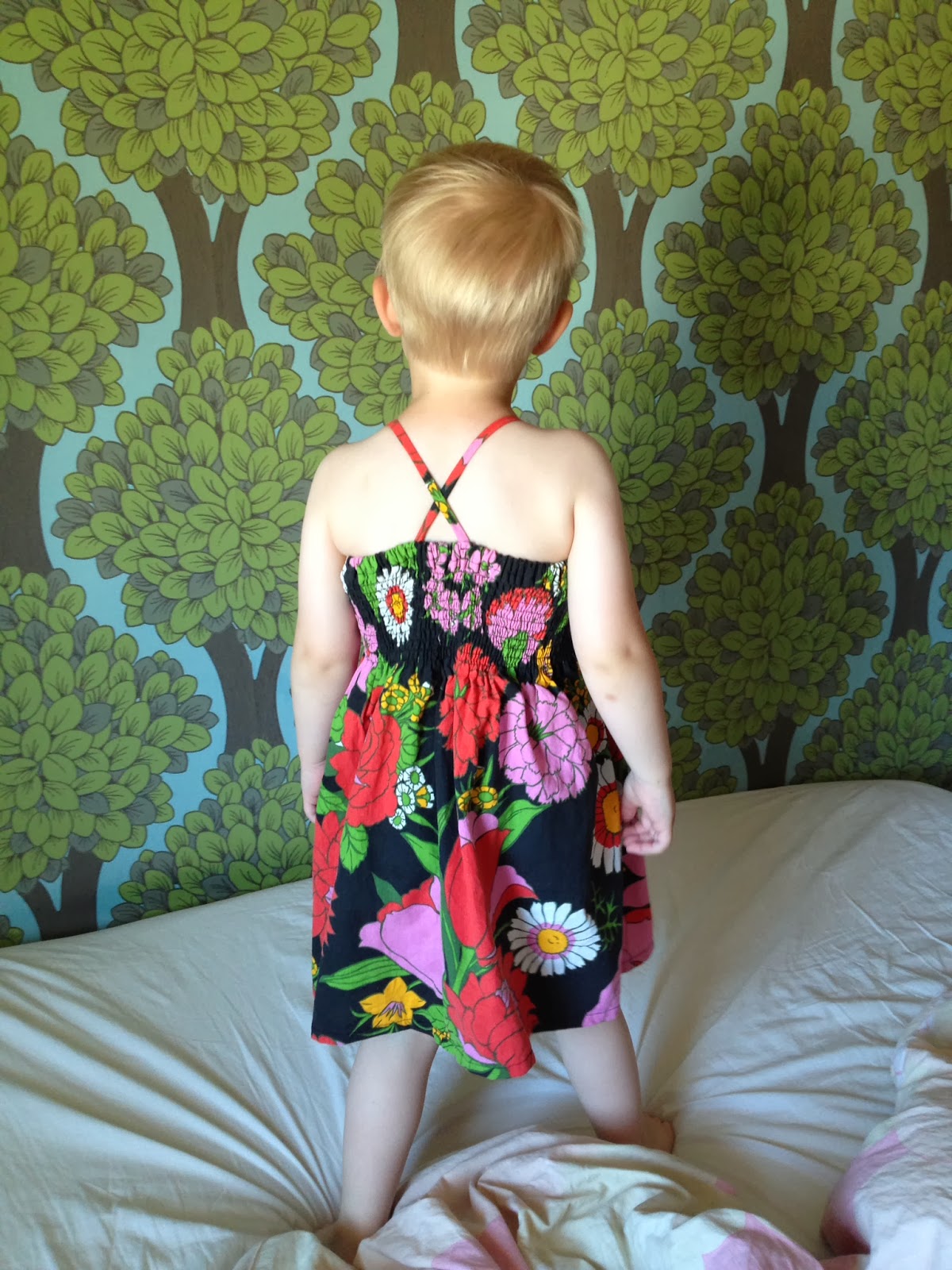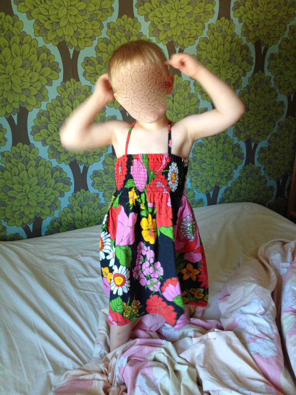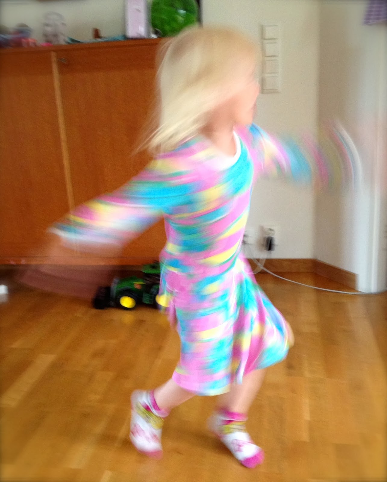 Såklart fick hon en klänning, eller en tunika iallafall. Eftersom det diagonalrandiga är tänkt till vännerna så var jag tvungen att blanda in lite av det tyget också.