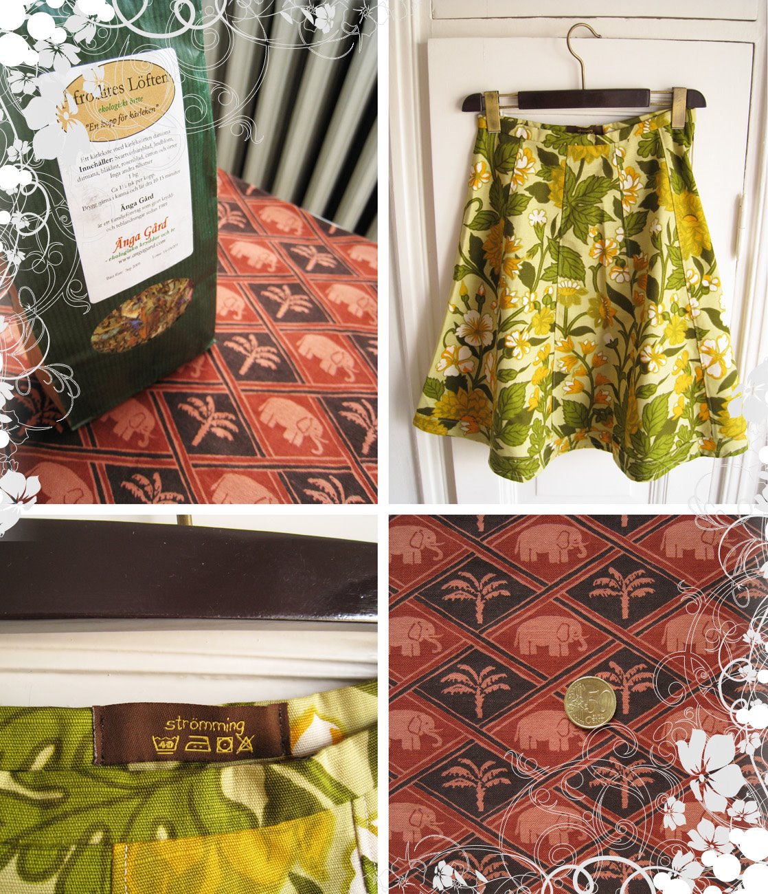 Det blommiga tyget kanske ni känner igen? Det fick jag i mitt ekobytespaket från Skaparstigen. Jag blev helt kär i tyget och när jag kom på att jag hade ett marint tyg i linne/någonting annat vet ej vad men det gör att linnet inte skrynkar sig så såg jag framför mig de här toppen i dessa två tyger. För mig är det alldeles ”lagom” med lite färg och mönster och så ganska mycket enfärgat. Den här kommer jag att trivas i! Det marina tyget har jag fått av min svärmor, hon hade fått en hel säck med stuvar från en tygaffär att göra mattrasor av men jag fick gå igenom säcken först och ta vad jag ville ha! (Svärmors mattor finns till salu här om någon vill ha riktigt tjocka fina trasmattor)