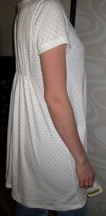 Den passade precis på I så jag borde ha sytt den i en storlek större. Nu är spetsen slut så en likadan kan jag inte göra. Å andra sidan har jag ett helt skåp fullt med tyger att matcha ihop så kan nog få fram en annan fin tygmatchning.