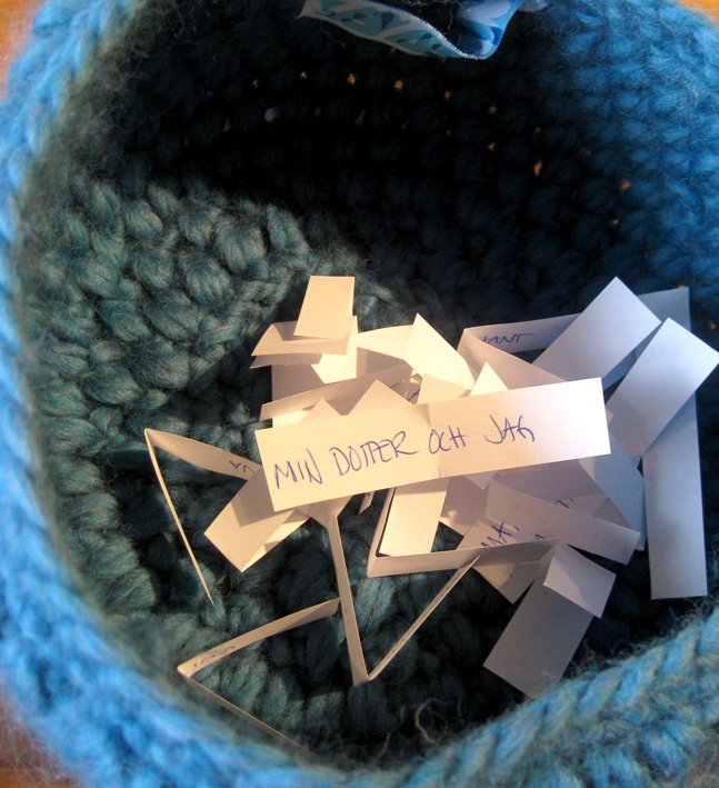 Dragningen gjordes idag kl 12.00 av min kära sambo under överinseende av mig och lilla I. Lottens beslut kan inte överklagas och som fotot visar är vinnaren….