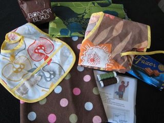 Brun muddväv från Ohlssons tyger, samma muddväv som jag svurit att inte använda som mudd mer eftersom den är så dååååliiig, men jag tänkte att den kanske funkade bättre som tyg. Det gjorde den visserligen – liiite – men det är fortfarande superdålig kvalitet och svårt att sy i.