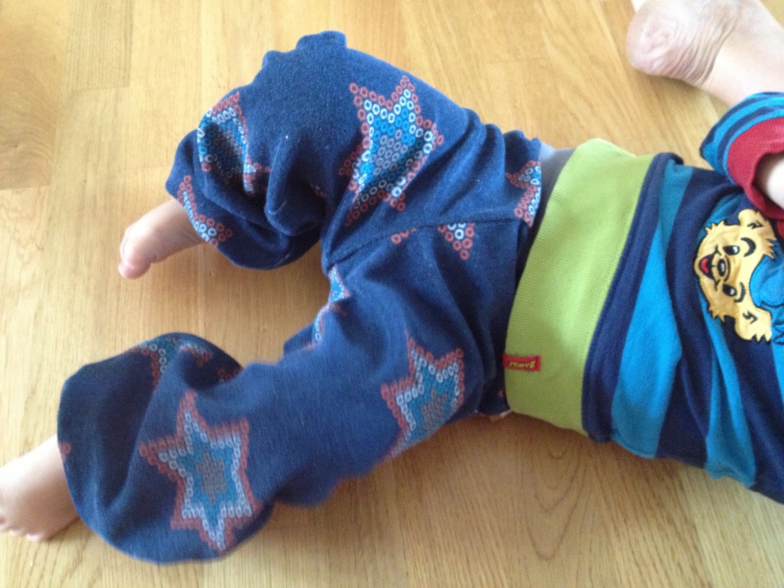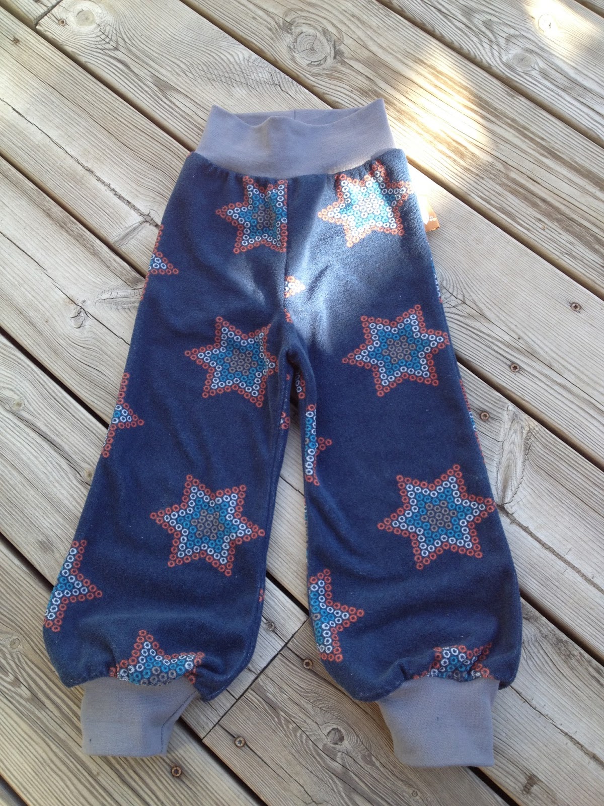 De är ritade med en blandning av mått från min 18-månaders och tillskärarakademiens måttlista för strl 86. De är lite långa i benen för vår kille som är 82 cm lång men det ska ju strl 86 vara då! På onsdag börjar lilleman skolas in på förskola, han behöver nog ett gäng brallor till så jag får jobba vidare med mönstret! Sedan ska det även ritas mönster till storebror och storasyster som även de behöver påfyllning inför höst och vinter. De har växt så det knakar i sommar alla tre!
